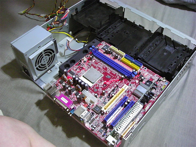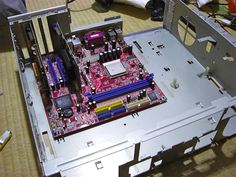 中身の写真。いつぞやのジャンク M/B を使用しました。