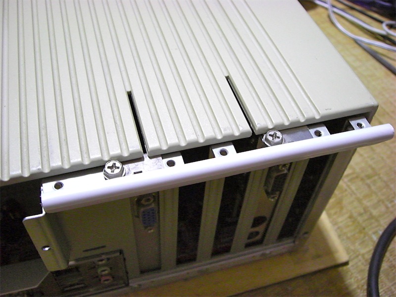 拡張カード取り付け用のねじは、下の写真のように筐体の外側に出ます。