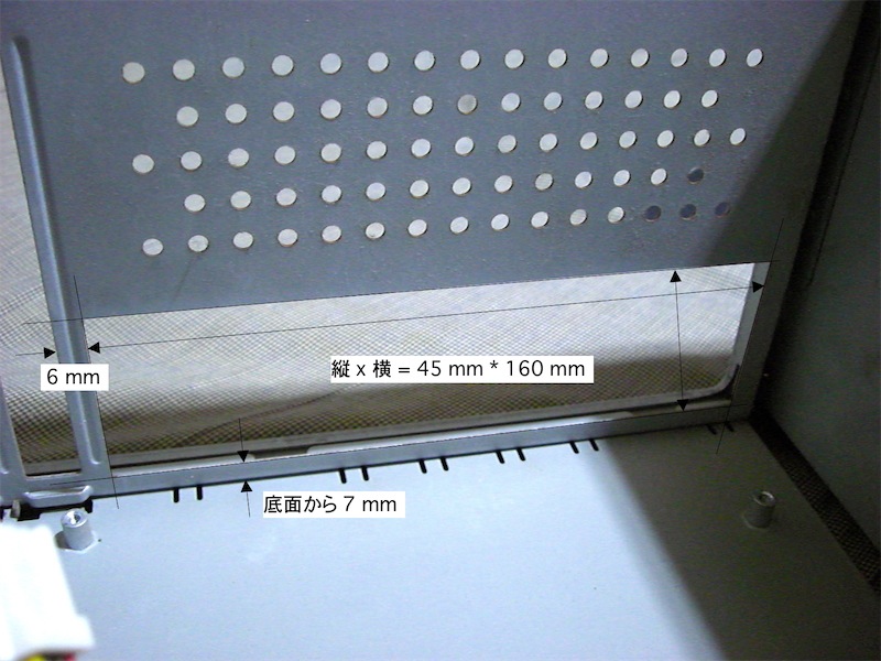PC ケースにおける PCI スロット周りの寸法( #02 )。