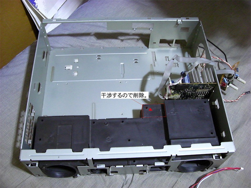 当然の事ながら、写真にある通り、マザーボードと干渉する箇所は削除しなくてはいけません。