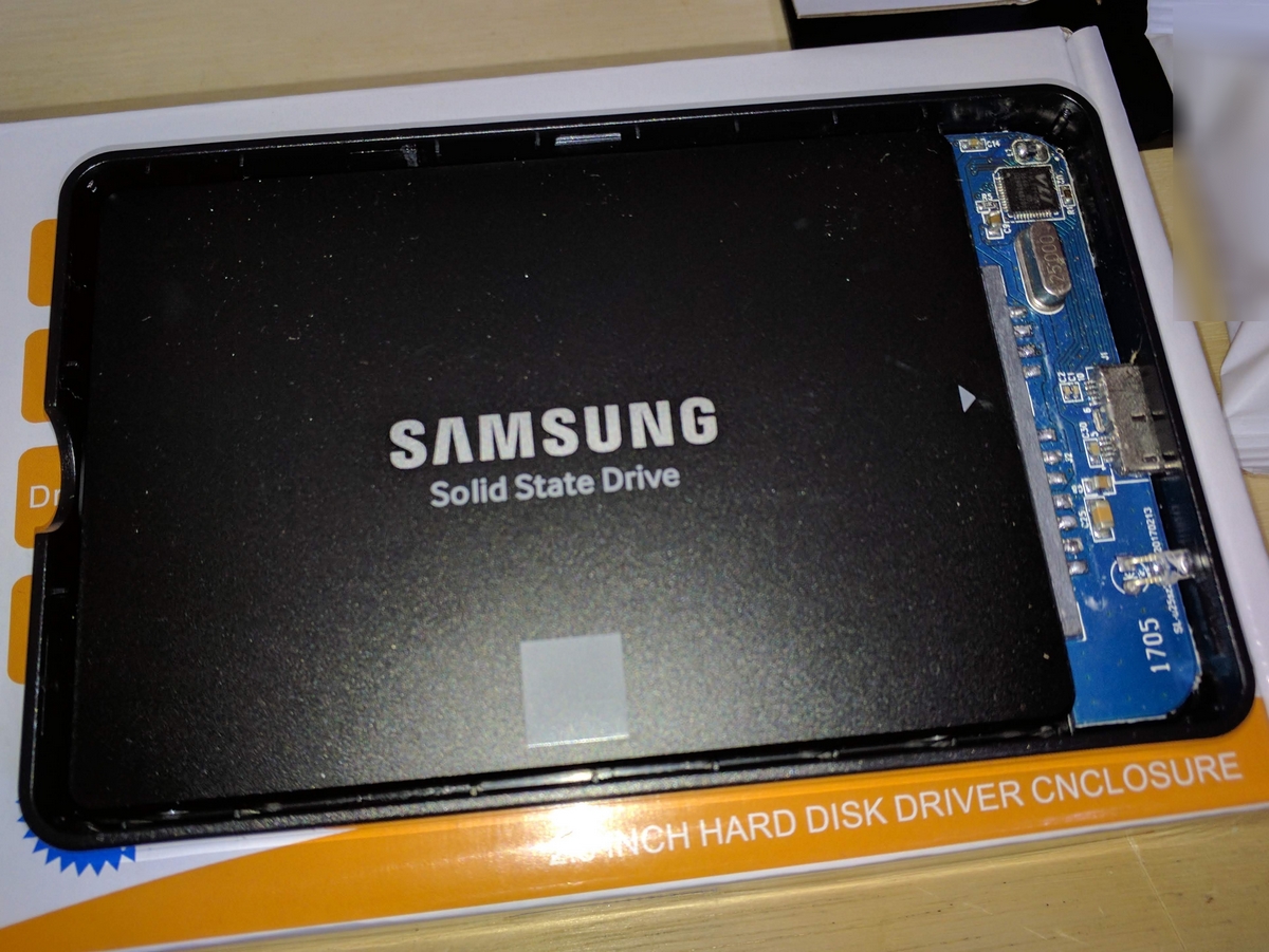 先日まで旧メイン PC ( Core2Quad )で使ってた Samsung の SSD が余ってるので、適当に外付けにしました。