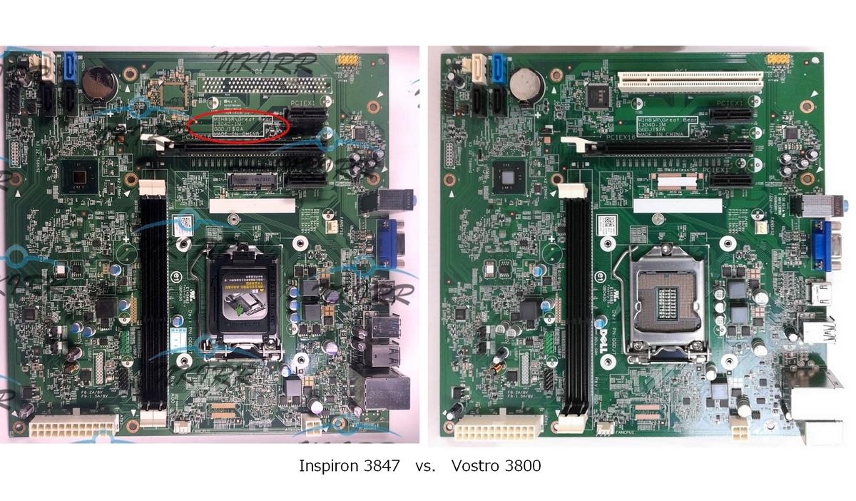 うちの Vostro3800 互換 PC (笑)が BIOS 上では何故か Inspiron3847 と表示される怪現象があるのですが、両者のマザーボードを比較したら納得できました。